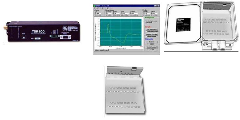 TDR系統(tǒng)的主要組件是CSI 數(shù)據(jù)采集器、TDR100反射計(jì)、SDMX50系列同軸多路器、連接電纜和TDR探頭。
