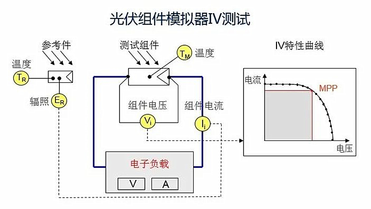 光伏組件的IV曲線是描述光伏電池工作狀態(tài)的圖表,其中I表示電流,V表示電壓,IV曲線通常用于評估光伏電池在不同光照和溫度條件下的性能。這個曲線是分析光伏組件發(fā)電性能的重要依據(jù)。
