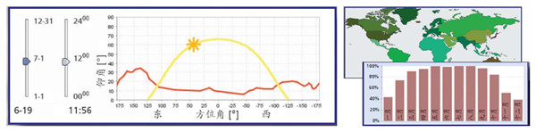 (6)可以針對(duì)不同的建筑、不同時(shí)間段進(jìn)行模擬計(jì)算軟件中采用動(dòng)態(tài)建筑模擬,考慮到建筑所有相關(guān)的參數(shù),包括幾何結(jié)構(gòu)、方位和熱質(zhì),提供詳細(xì)的隔熱數(shù)據(jù);同時(shí)軟件在計(jì)算中,由定位坐標(biāo)和地平線共同確定太陽(yáng)的位置,每四分鐘更新一次,因此甚至可以專門針對(duì)某小時(shí)、某天或者某段時(shí)期內(nèi)的太陽(yáng)能系統(tǒng)進(jìn)行模擬計(jì)算。