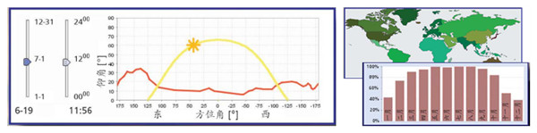 (2)太陽能系統(tǒng)模擬計(jì)算統(tǒng)計(jì)軟件:可以根據(jù)被測產(chǎn)品的數(shù)據(jù), 模擬其產(chǎn)品在世界各地的應(yīng)用效果分析圖表,并建立產(chǎn)品檢測元件庫。