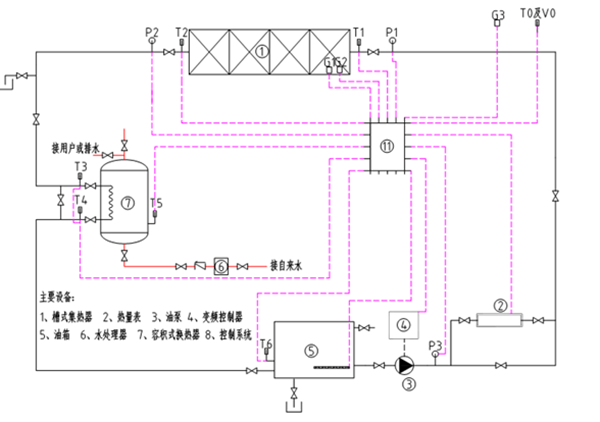 | 3 | 管路溫度 | 測量范圍 | 0~300℃ | 集熱器進出口T1T2、容積式換熱器油路進出口T3T4、容積式換熱器T5、油箱T6。 |