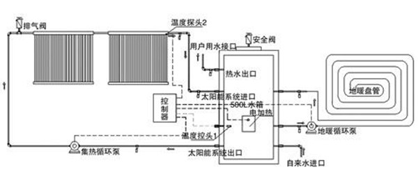 本試驗(yàn)室采暖采用太陽(yáng)能熱水器和地暖相結(jié)合方式: