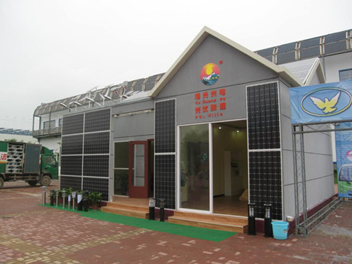 太陽(yáng)電池組件最小輸出功率大于15 Wp;數(shù)量:33塊,安裝于太陽(yáng)房南墻外表面,裝飾與發(fā)電一體.