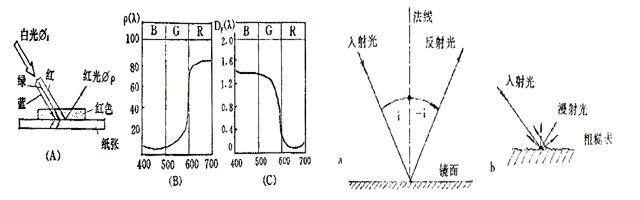 所謂反射是指選擇反射,非透明體受到光照射后,由于其表面分子結(jié)構(gòu)差異而形成選擇性吸收,從而將可見(jiàn)光譜中某一部分波長(zhǎng)的輻射能吸收了,而將剩余的色光反射出來(lái),這種物體稱為非透過(guò)體或反射體。本儀器就是利用此原理,采用光電轉(zhuǎn)換感應(yīng)原理,它與多功能數(shù)字感應(yīng)器配接使用,均能精確的測(cè)量出不同材料的反射率和不同光源的光譜范圍。儀器的感應(yīng)元件采用了繞線電鍍式多接點(diǎn)熱點(diǎn)堆,其表面涂有高吸收率的涂層,感應(yīng)元件的熱接點(diǎn)在感應(yīng)面上,而冷接點(diǎn)位于一起的機(jī)體內(nèi),以便直接取環(huán)境溫度。為了防止熱接點(diǎn)單方向通過(guò)玻璃罩與環(huán)境進(jìn)行熱交換影響測(cè)量精度,采用了兩層玻璃罩。當(dāng)有光波通過(guò)反射片反射過(guò)來(lái)的時(shí)候,接受儀的冷熱接點(diǎn)就會(huì)產(chǎn)生溫差即產(chǎn)生電勢(shì)值,也就是將光信號(hào)轉(zhuǎn)換為電信號(hào)輸出,在線性誤差范圍內(nèi),輸出的信號(hào)與光波通過(guò)反射片反射出的光照度成正比。光的鏡面反射與粗糙面反射示意圖如下: