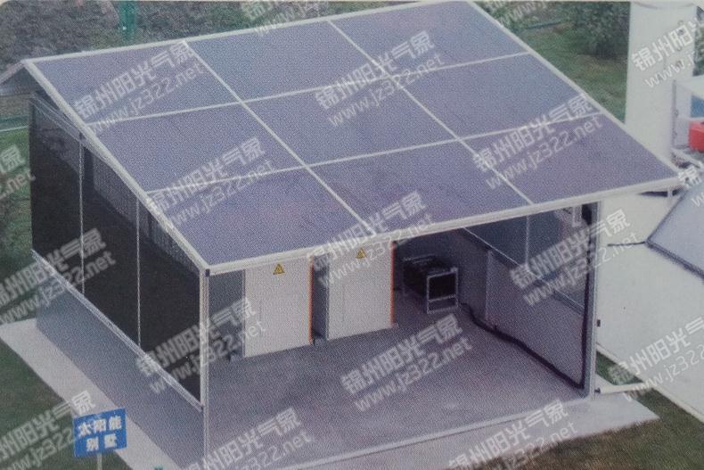 設(shè)計(jì)太陽能小屋,并在建筑物外表面(屋頂及外墻)鋪設(shè)光伏電池,光伏電池組件所產(chǎn)生的直流電需要經(jīng)過逆變器轉(zhuǎn)換成220V交流電才能供家庭使用,并將剩余電量輸入電網(wǎng)。