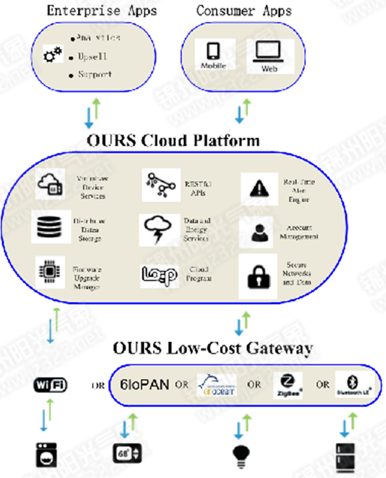 為了配合學生真正體驗物聯(lián)網(wǎng)的應用,基于我們的廣域云平臺,可以實現(xiàn)廣域手機APP和教室里面的傳感網(wǎng)節(jié)點之間的互聯(lián)互通,真正實現(xiàn)無處不在的"物聯(lián)網(wǎng)"。