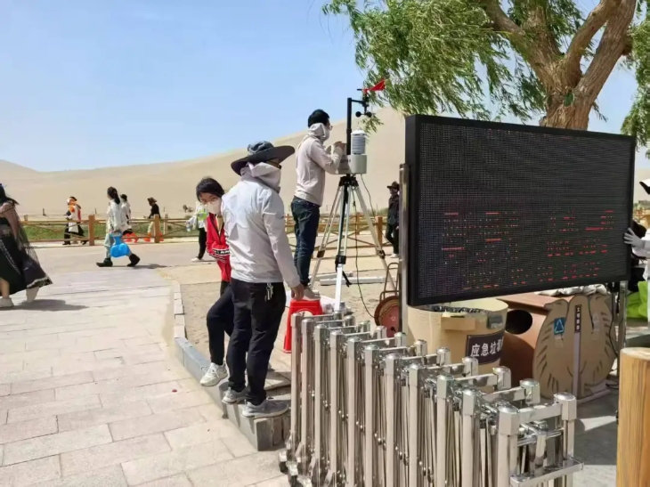 這個“五一”假期對于甘肅氣象部門來說意義非凡。敦煌鳴沙山景區(qū)意料之中的再次人山人海,而具有挑戰(zhàn)性的是5月3日傍晚,敦煌市經(jīng)歷了一場部分地區(qū)最大風力達到12級的強沙塵暴,近萬名游客滯留在敦煌的景區(qū)。敦煌市相關(guān)部門充分利用陽光氣象的氣象監(jiān)測設(shè)備,根據(jù)天氣形勢順利完成近萬名旅客的轉(zhuǎn)運,氣象服務(wù)在其中發(fā)揮著怎樣的作用?讓我們一探究竟。