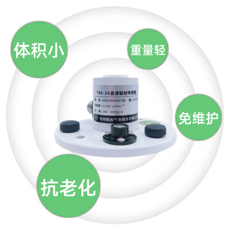 TBS-2A直輻射傳感器專門用于監(jiān)測(cè)和記錄太陽(yáng)直接輻射的強(qiáng)度。其核心部件是高精度感光元件,這些元件對(duì)光線具有極高的敏感性,能夠捕捉太陽(yáng)輻射中未經(jīng)大氣散射、反射或吸收的那部分能量,精確地將光信號(hào)轉(zhuǎn)換為電信號(hào),通過(guò)測(cè)量這一電信號(hào)的大小,可以準(zhǔn)確反映太陽(yáng)光的直接輻射強(qiáng)度。儀器本身沒(méi)有移動(dòng)部件、不需供電、免于維護(hù),能夠勝任野外的長(zhǎng)期監(jiān)測(cè)使用。