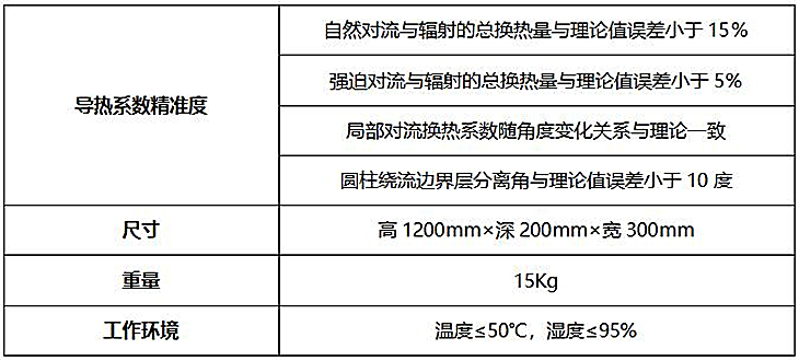 對(duì)流和輻射綜合傳熱實(shí)驗(yàn)儀是一臺(tái)研究對(duì)流與表面輻射復(fù)合換熱,測(cè)量水平圓管自然、強(qiáng)迫對(duì)流換熱系數(shù)以及總體能量守恒分析的實(shí)驗(yàn)教學(xué)設(shè)備,與傳熱測(cè)控儀配合使用,可進(jìn)行多組教學(xué)實(shí)驗(yàn),全面覆蓋圓柱繞流邊界層分離、水平圓管自然、強(qiáng)迫對(duì)流換熱理論,風(fēng)機(jī)轉(zhuǎn)速和流量電子調(diào)節(jié),連續(xù)、平滑調(diào)節(jié)。精確測(cè)量水平圓管的自然、強(qiáng)迫對(duì)流換熱系數(shù),精確測(cè)量邊界層分離角,展示局部換熱系數(shù)隨角度變化趨勢(shì),結(jié)合全面詳細(xì)的數(shù)據(jù)處理和誤差分析方法,對(duì)學(xué)生達(dá)到科研啟蒙效果。