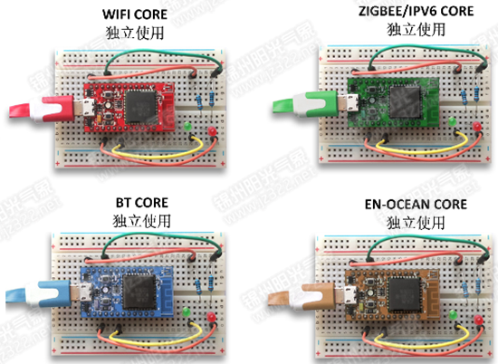 把無線通信核心模塊插到智能傳感器底板上,便可以組合成各種無線通信形式的傳感節(jié)點。