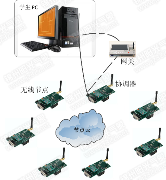 對單個學生,可以有不同無線節(jié)點構成"節(jié)點云",學習過程主要側重于無線組網(wǎng)協(xié)議,學習無線組網(wǎng)協(xié)議的架構,原理及代碼實現(xiàn)。簡單組網(wǎng),可以直接由協(xié)調(diào)器直接連接學生計算機,通過編程環(huán)境實現(xiàn)組網(wǎng)協(xié)議學習,也可以通過網(wǎng)關實現(xiàn)組網(wǎng)連接,并在網(wǎng)關上實現(xiàn)基本人機交互。