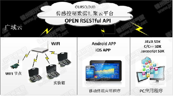 | 廣域云 | 基于部署在公有云上的服務接口,學生設備通過HTTP的RESTful API就可以實現(xiàn)廣域傳感網(wǎng)數(shù)據(jù)傳輸,結合我們提供的Android和ISO的APP就可以非常方便地實現(xiàn)遠程傳感網(wǎng)數(shù)據(jù)交互?;谠破脚_我們還可以實現(xiàn)云固件程序下載和云端編程。 |