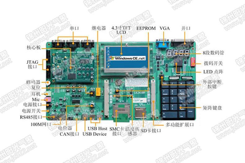 2、具有RS232接口、RS485接口、USB接口、CAN接口、SD卡接口、SMC卡接口、以太網(wǎng)、VGA輸出、LED點(diǎn)陣、AC97接口、矩陣鍵盤。